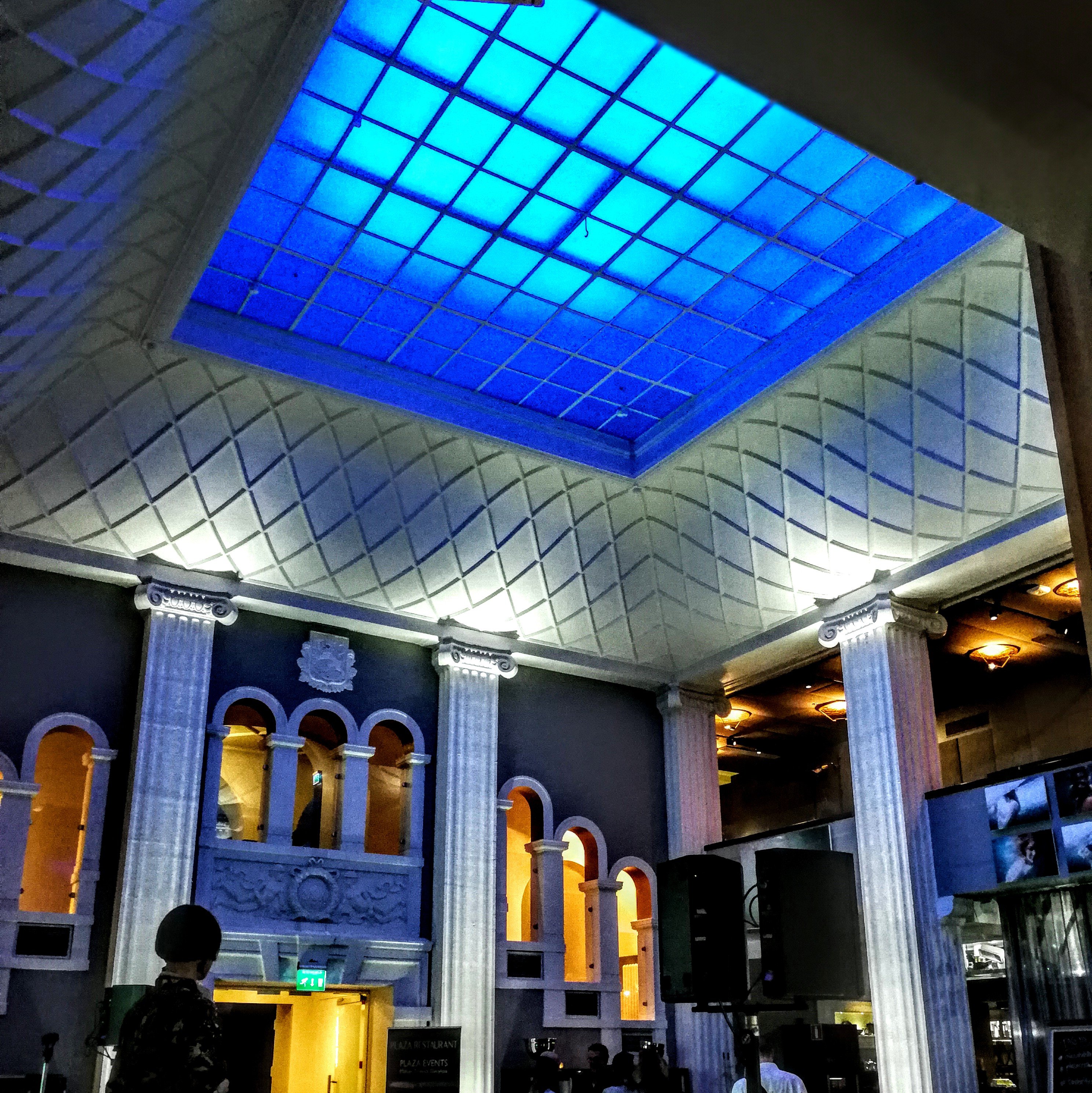 Plaza Restaurant-ravintola ja koko Radisson Blue hotelli oli aikanaan SOKn pääkonttori ja jylhä fiilis on säilytetty. Ravintola taipuu hyvin vaikka hulppeille hääjuhlille, mutta normi iltana meininki on rentoa, ei ainakaan pönöttävää.