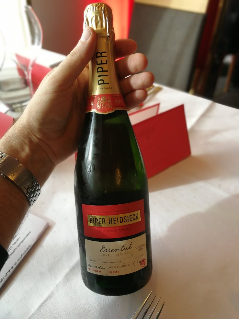 Viking Line ja Piper-Heidsieck aloitti jo reilu vuosi sitten keväällä neuvottelut ja prosessi eteni myötätuulessa nopeesti. Toukokuussa 2018 Essi pääsikin jo maistamaan ensimmäisen korkatun pullon sisältöä ja nyt etikettien kyljessä komeilee hänen nimensä. Aika moista! Moneen taipuva shamppis on pääosiltaan sekoitus Pinot Noiria (80%) ja Chardonnayta (15%) ja sokerin osuus on 5%. Essi itse kuvailee shamppanjaansa