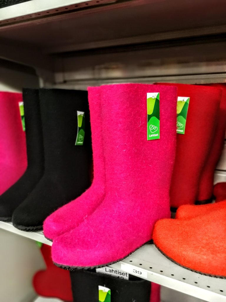 Modernisoidut huopatuotteet, kuten läppärilaukut, kännykotelot ja muut ovat tehtaanmyymälässä esillä sujuvasti käsi kädessä vanhojen tuttujen huopasaapikkaiden kanssa ja molemmat tekee kauppansa hyvin. Lahtisten tehtaanmyymälään kannattaa ehdottomasti tehdä visiitti, kun on niillä suunnilla ja verkkokaupasta voi tuotteita myös hankkia helposti. Jälleenmyyntikanavatkin on Lahtisilla Suomessa laajat.