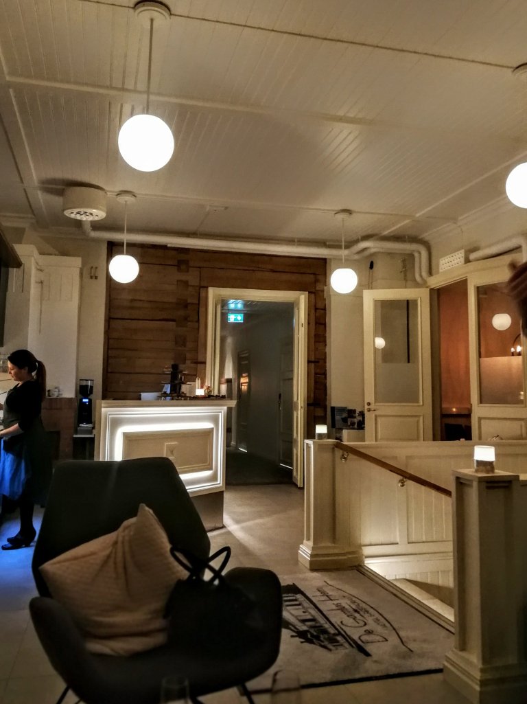 Hotellin yleiset tilat on sisustettu skandinaavisen harmoonisesti, eikä katsetta häiritse mikään. Aula- ja ravintolatilan päätyjen kauniit hirret on kaivettu esiin 4 senttiä paksun sementin alta ja takat sekä kakluunit on jätetty paikoilleen. Talo on suojelukohde, joten rajotteitakin rempassa ja tilojen jaossa on ollut. Hotellihuoneet itsessään on varsin kompakteja ja myös maltillisen tyylikkäin sävyin sisustettuja. Itselleni hyvän hotellihuoneen tärkein kriteeri, sänky, on täällä tasokas ja sopivasti kroppaa tukeva. Taisinpa nukkua tasaisemmin, kuin pitkään aikaan omassa sängyssä. Standardihuone sopii mainiosti yhdelle. Jos teitä on kaksi, kannattaa huomioida, että pesytymistilat ja veski on erotettu huoneessa vain liukuovellisella lasiseinällä. Hotellin junior sviitissä on luonnollisesti enemmän tilaa. Kaikki majoitustilat on ensimmäisessä kerroksessa. Talon toisessa kerroksessa sijaitsee erikseen vuokrattavat juhlatilat, jotka soveltuu hyvin kokouksille, pienille seminaareille ja juurikin vaikka juhlille.