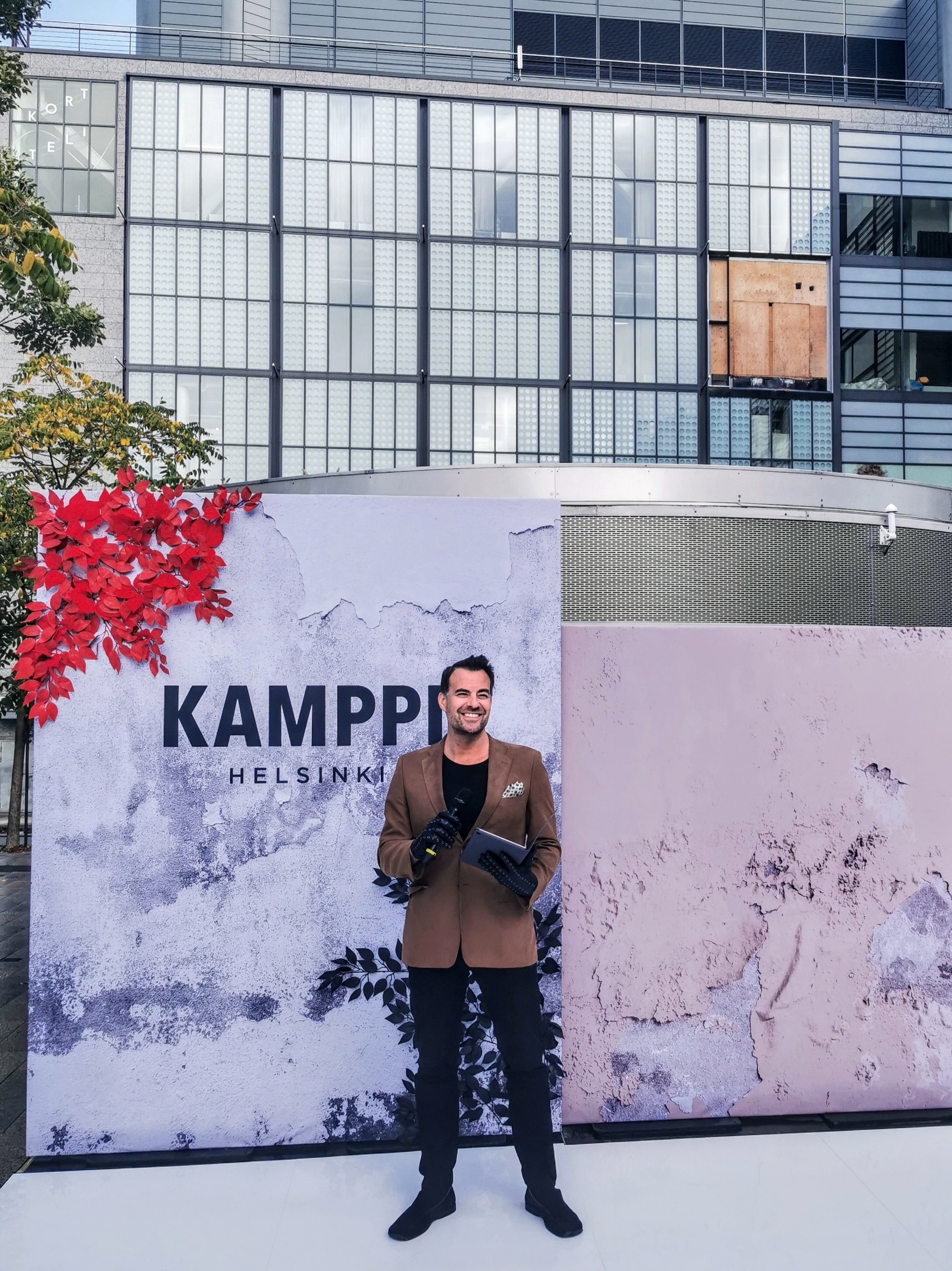 Viikonloppuna myös Kamppi Helsinki -kauppakeskus juhli Fashion Happens-teemalla syksyn muotia ja samalla ilmeensä uudistumista. Mä toimin tapahtumassa toisena juontajana ja houstasin sen ohessa järjestetyt muotinäytökset Tennispalatsin aukiolla. Vaikka välillä ripsahteli vettä, oli näytöksissä ilonen fiilis ja kauppakeskuksenki puolella kuhinaa. Yks kohokohta monelle asiakkaalle oli shoppailun lomassa päästä ammattimuotikuvaajan kameran eteen otattaan itestään muotikuva velotuksetta. Tällasissa tapahtumissa on tosi nasta olla osallisena.