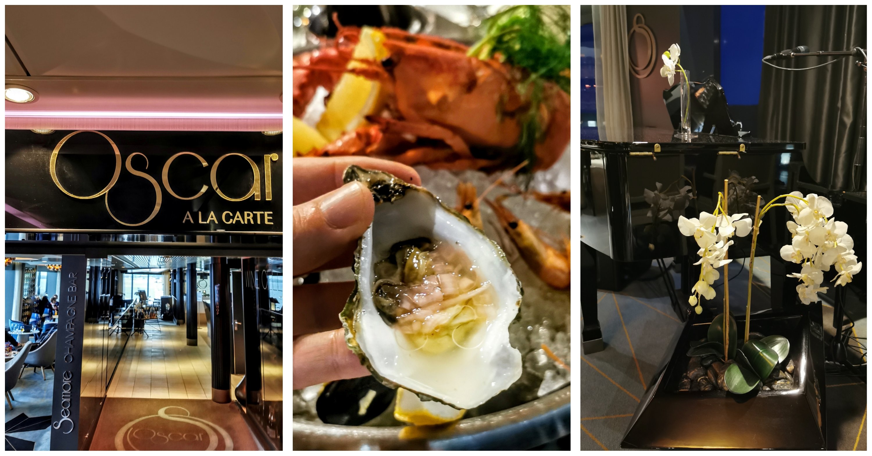 Gracen ruoka on loistavaa ja vaihtoehtoja on paljon. Me ollaan molemmat kalaruoan ystävii ja monta kertaa hehkutettu a la carte-ravintola Oscar’sin äyriäisvati oli meijänkin reissun ehdoton illallis-valinta. Ostereiden, ravunsaksien, sinisimpukoiden ja katkarapujen kyllästämän platterin kruunas hummeri. Täl kertaa mukana oli myös sesonkiherkkuna muutama jokirapu. Hyvä viinivalikoima ja pro henkilökunta takas todella onnistuneen illallismuiston. Myös premium-hytin hintaan sisältyvä, superhyvä brekkari nautitaan täällä.
