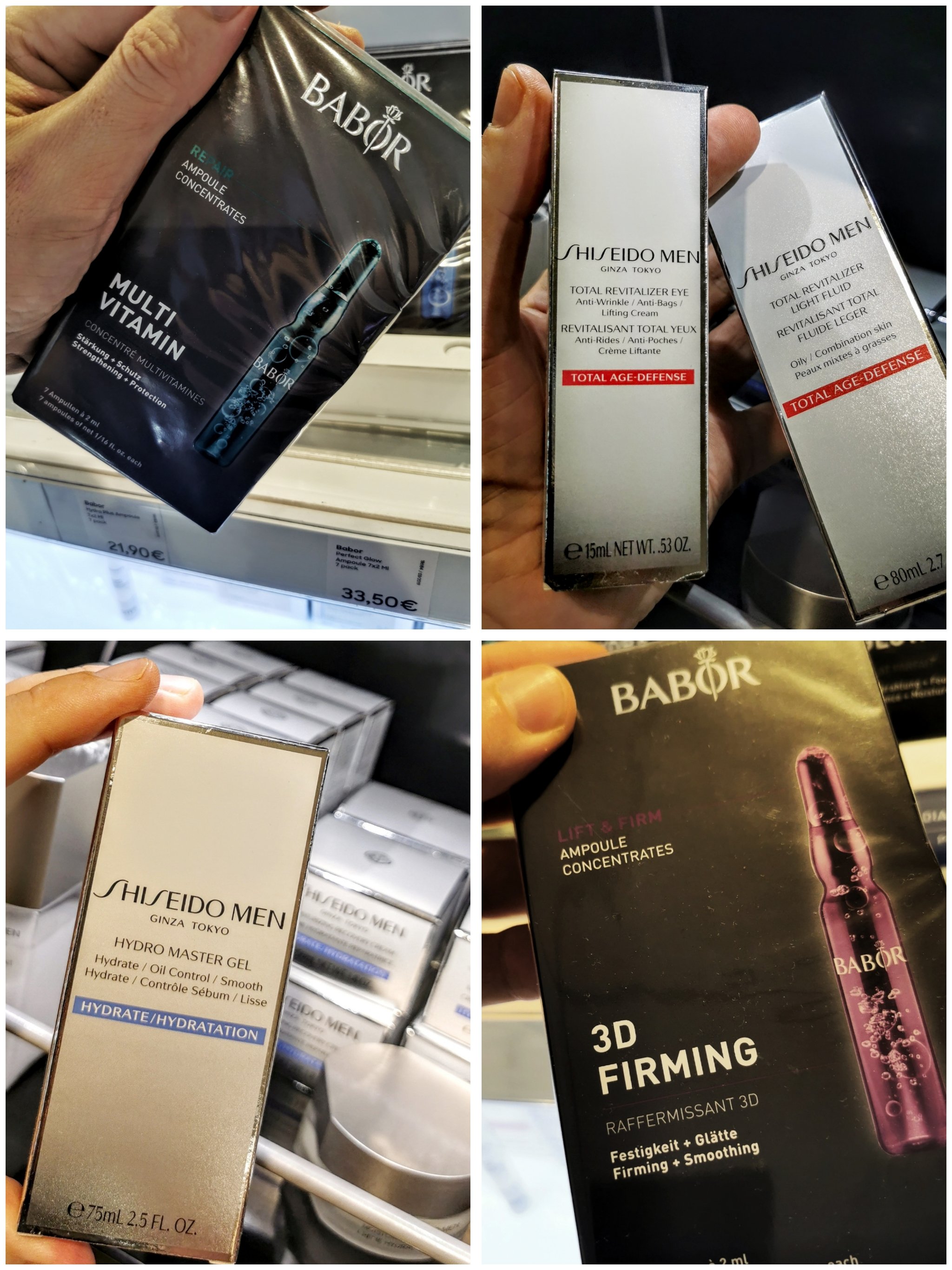 Kosmetiikan puolelta etin itelle uutta kosteusvoidetta. Miesten valikoima on Gracella hyvä ja pari uuttaki tuttavuutta löyty. Myös tällä puolella tax-freeta kandee rohkeesti kysyy ammattitaitosilta myyjiltä vinkkiä ja apua valintojen kanssa. Miehelle ensinnäkään EI OO MIKÄÄN HÄPEE pitää omasta ihosta huolta, päin vastoin. Ja henkilökunta jeesaa enemmän ku ilolla meitä miehiäkin. Korkeetasoset Babor-tuotteet on käytössä laivan span hoitolassa ja merkin tuotteita on myynnissä myös myymälässä. Eritoten sarjan tunnetut seerumi-ampullit kandee pistää muistiin ja ostoslistalle. Ole Henriksen -tuotteisiin on lisätty piristäviä tuoksuja ja niissä on aika ylellinen tatsi. Testaa vaikka ekaks kätevä matkasetti, jossa on pienempi kokoset, tasapainottavat putsari, kasvovesi ja kosteuttaja. Myyjä tosin zekkaa sun iholle sopivimman setin. Itelle ihan uusia, mut mielenkiintosia brändejä on tanskalainen ecooking, joka on täysin vegaani sarja (poislukien muutama mehiläisvahaa sisältävä tuote) sekä Australiasta lähtösin oleva Grown Alchemist, joka myös uskoo luonnollisuuden voimaan. Mun omasta beautyboxista löytyy entuudestaan Shiseido Men -tuotteita. Ne on taattua japanilaista laatua ja siks ehkä vähän hintavia. Mut omaan naamaan investointi maksaa aina ittensä takasin. Itelle ostoskoriin sujahti tälkertaa Shiseidon kosteusgeeli ja Baborin multivitamiini ampullit.