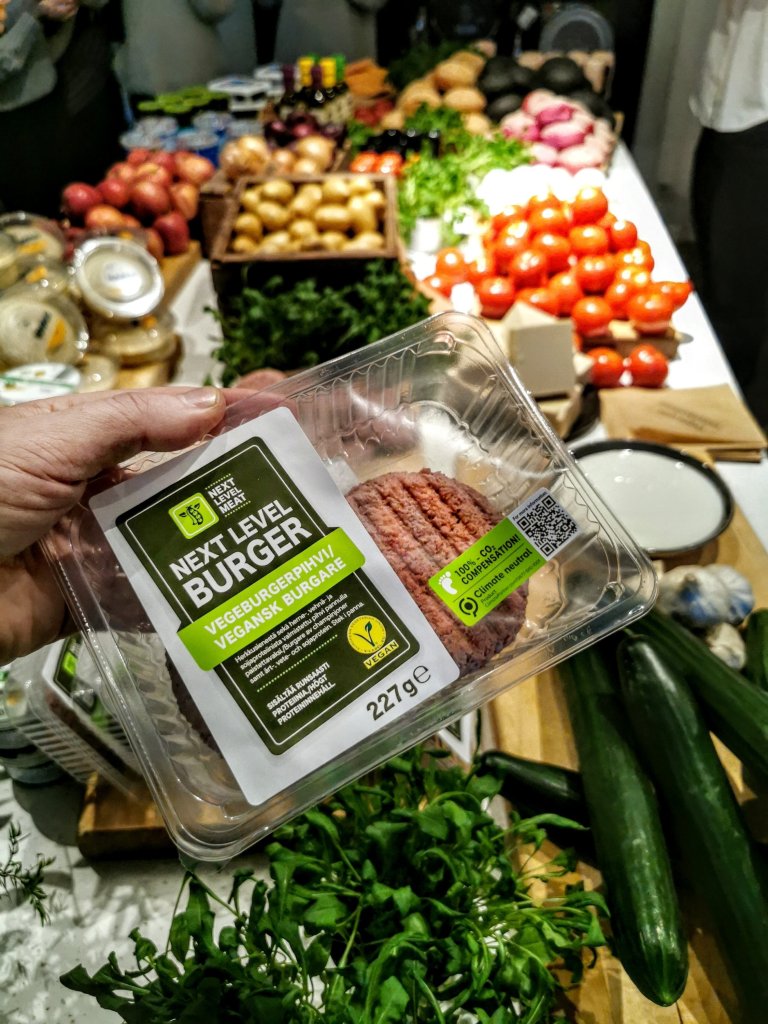 Next Level-perheeseen kuuluu (ainakin toistaseks) kaks tuotetta, vegejauhis ja vegepihvi. Molemmat sisältää herkkusienii sekä herne- ,vehnä- ja soijaprotskuja. Pihvit on niinikään nimenomaan tarkotettu hampparien väliin ja niitä päästiin myös koklaamaan.