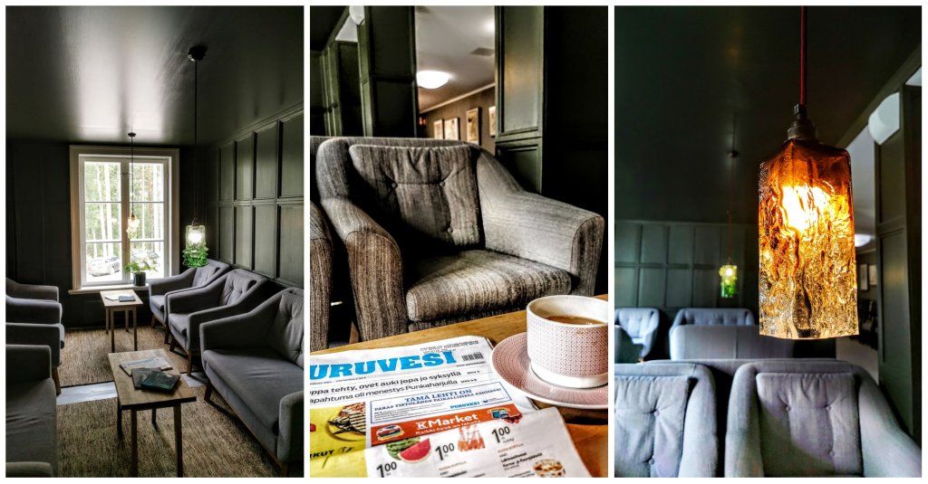Huolella funtsitut yksityiskohdat antaaki mieleenpainuvia muistijälkiä visiitille ja viihtyvyyteen on täällä panostettu. Sen on hiffannu moni kansainvälinenki vieras, julkaisu ja media. Itseasiassa koko alue on saanu positiivista huomiota maailmanlaajusesti hotellin myötä ja koko Etelä-Savo (Suomen tavoin) on hyvässä nosteessa. Pieninä detskuina esim. monesti somekanaviin nostettu kiikkustuoli-veranta on ihana keksintö ja näköalatorniin katettu romanttinen kahen hengen illallissetti myöski todella loistava idea. Hotellin yleisissä tiloissa on lisäks rauhallisia sopukoita, joihin voi istahtaa ihan vaan itekseen vaikka Puruveden paikallislehteä selailemaan.
