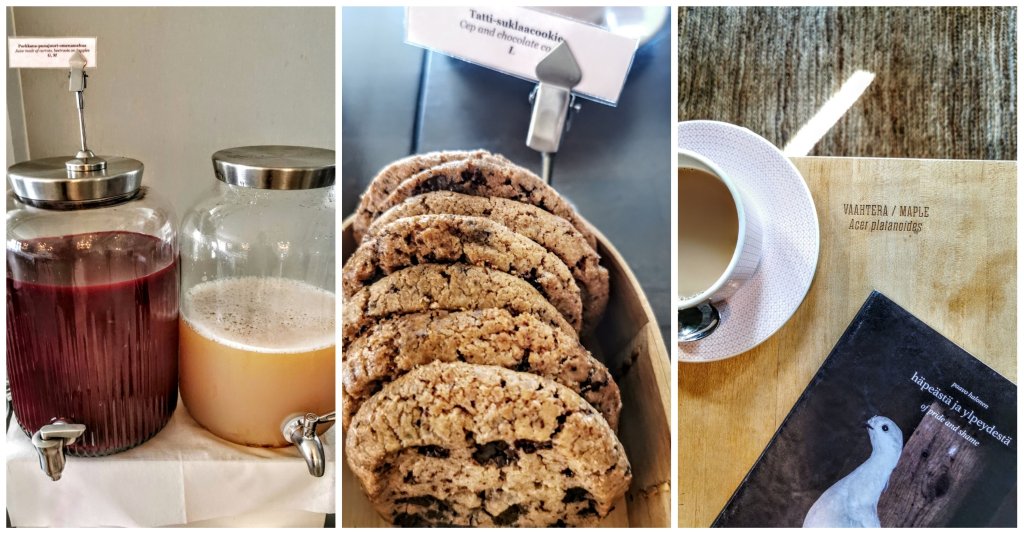 Hotelli Punkaharjulla aamiainenkin on oma elämyksensä. Ruokasali (ja kesäsin kuisti) viehättää. Bregun tuotteet on valikoitu huolella ja maltilla: mitään bulkkikamaa tai överikattausta ei oo tungettu pöytään. Just kiva, et on vain muutamia, hyväkshavaittuja ja monen makuun sopivia aineksia. Karjalanpiirakoita, keitettyjä luomumunia ja vastaleivottuu leipää löytyy, mut myös ihania juustoja, yön yli hautunutta ohrattopuuroo ja laadukkaita leikkeleitä. Bonarina lähitilan mehuja ja hauskoja tatti-suklaakeksejä. Täydellinen setti.