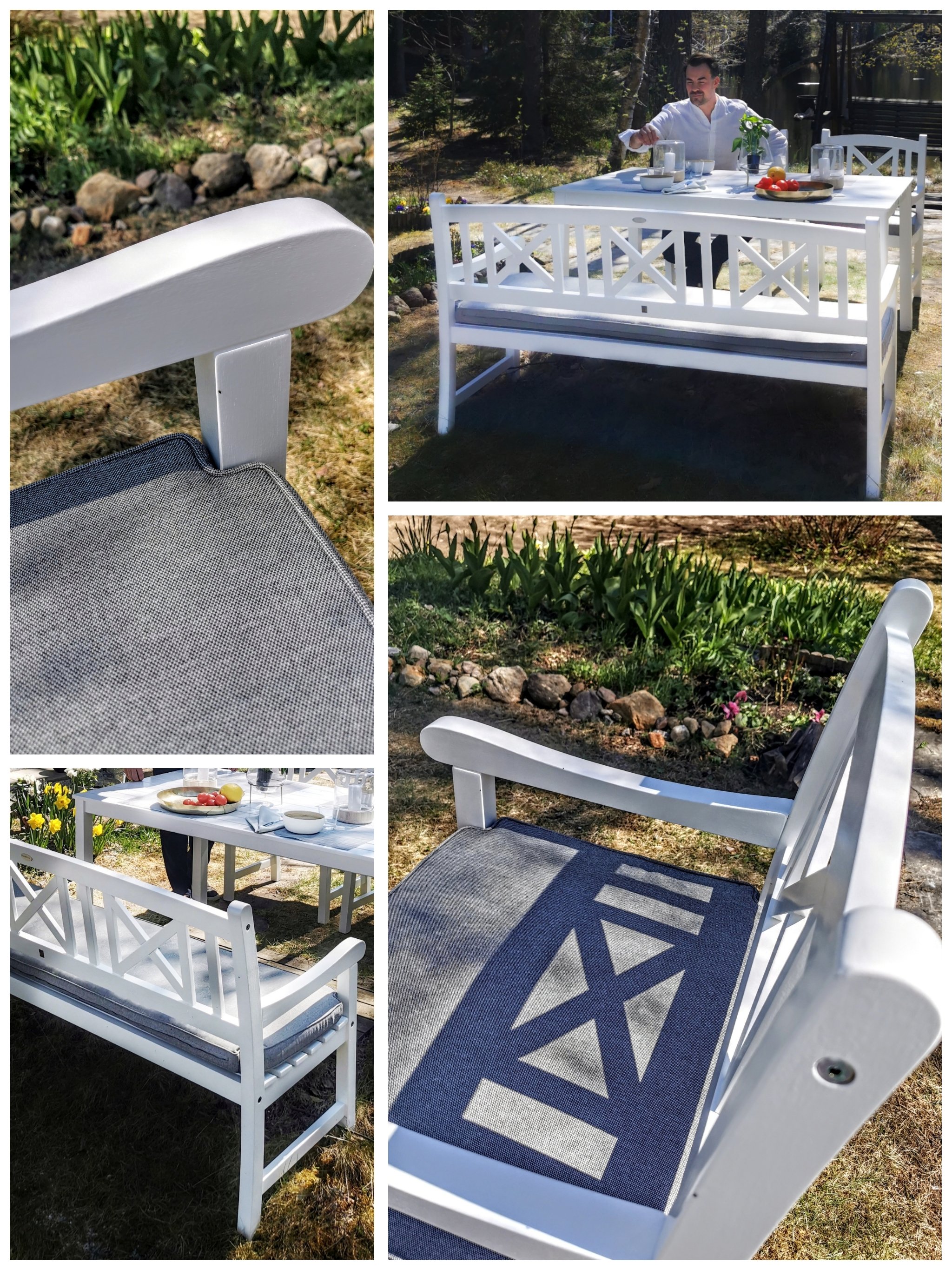 Me vietetään paljon aikaa mökillä ja alkukeväästä pitkälle syksyyn eritoten sen pihassa puuhastellen. Säiden salliessa usein myös mökkipäivän kohokohdat, aamiainen, lounas ja illallinen, nautitaan ulkosalla. Sikskin oli uusien puutarhakalusteiden hankinta edessä. Ne tulee taatusti oleen kovassa käytössä, kun monesti pöydän ääreen kokoontuu meidän kahen lisäks myös joukko ihania ystäviä.