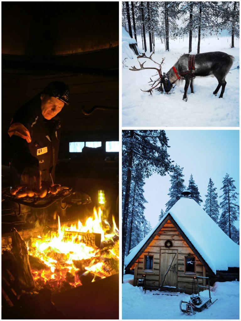 Meijän remmi teki moottorikelkkaretken Hanhilammen kodalle, jossa kuultiin tarinaa poroista, grillattiin makkarat ja nautittiin kunnon pannukahveet. Elämys oli kaikkinensa huippu, vaikka kaarroinkin lumihankeen kelkalla heti ekassa käänteessä. Pääsin myös kokeileen itelle täysin uutta touhua, nimittäin liukukenkäsuksilla (tai mitkäköhän ne nimeltään olikaan) kulkemista. Kenkiin sidottavat, lyhyitä suksia muistuttavat värkit on tosi kätevät. Lumikenkien tavoin niillä pystyy tarpomaan syvässäkin hangessa ja halutessaan lykkiä eteenpäin ku suksilla.