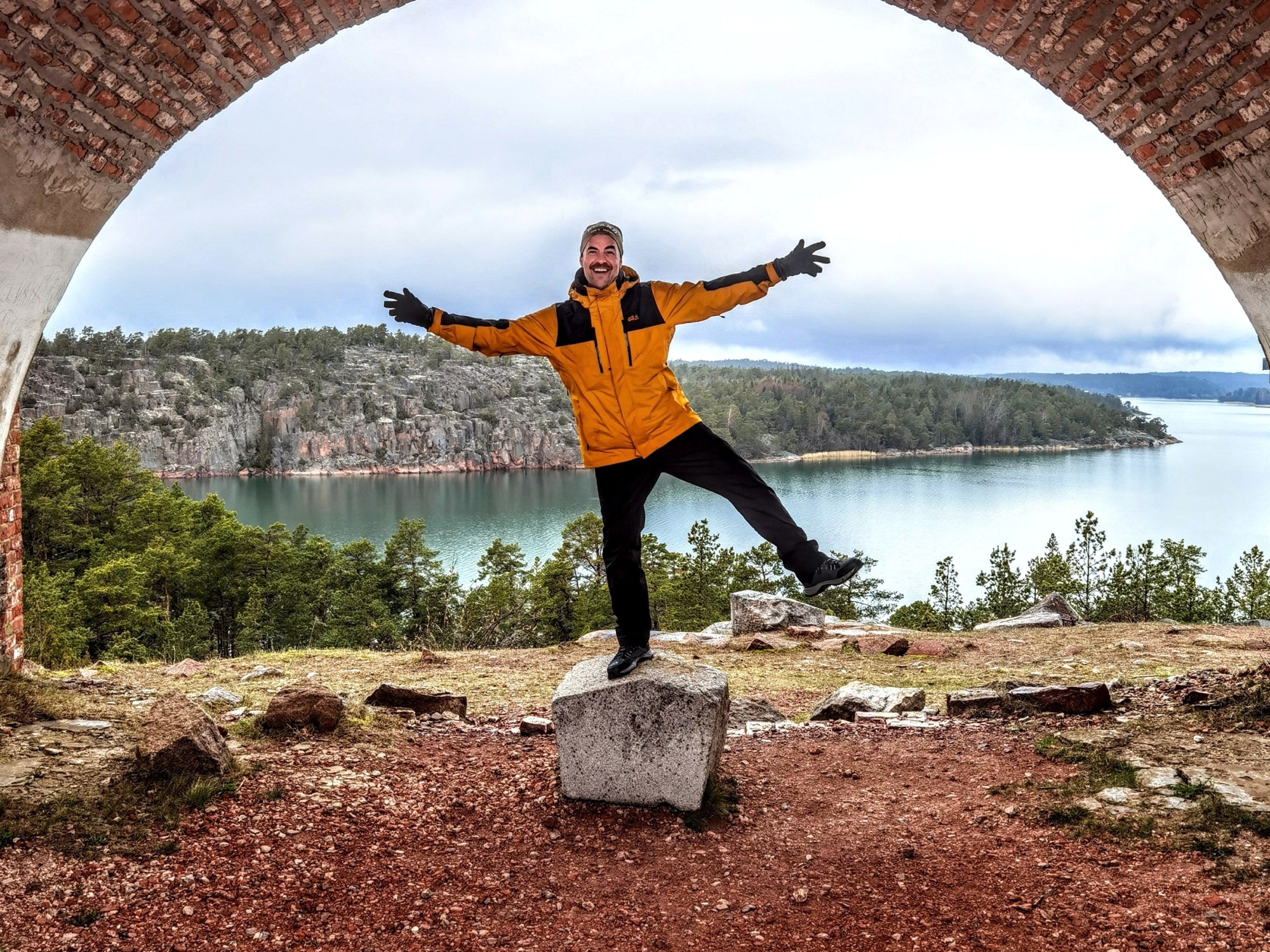 Me suunnattiin Bomarsundin historialliselle retkeilyreitille, jonka näkymät kruunaa vanhan sotalinnotuksen rauniot. Linna ei koskaan kerenny ees valmistuu kokonaan ennen pommitustaan, mut upee se on taatusti ollu ja hienolta se näyttää kyl nytkin. Mahtavat merimaisemat aukee linnakkeen reunoilta ja paikka on visiitin väärti. Alueelta löytyy myös hautausmaa, joka aikanaan oli useemmankin eri uskontokunnan viimenen leposija. Tuhnusäässä paikka vaikutti salaperäseltä.