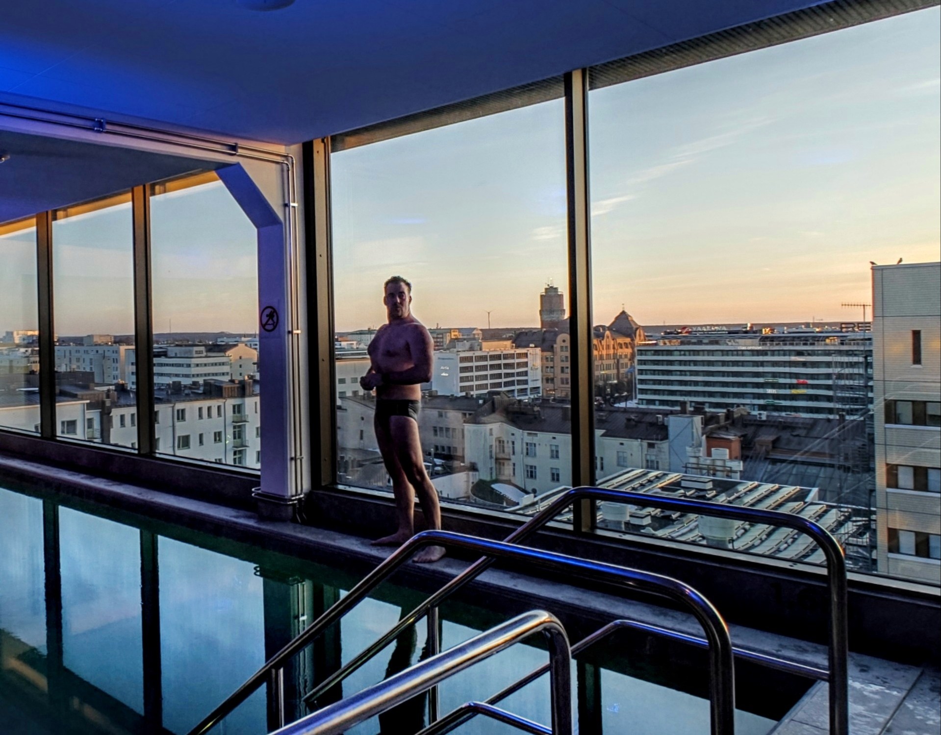 Vaikka meidän sviitissä sauna olikin, ei me siellä löylytelty. Royal Vaasan ehdoton helmi nimittäin löytyy talon 11. kerroksesta, Huippu Panoramic Sauna & Pool.