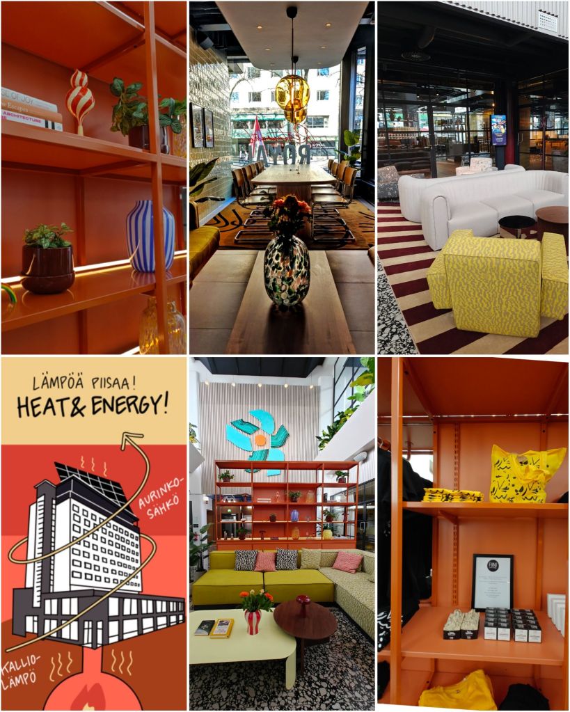 Royal Vaasa on selkeästi saanut uudistumisensa inspiraation auringosta, sen tuomasta valosta ja energiasta. Ja tämän huomaa jo heti sisään astuessa: valo tulvii ikkunoista 15metriä korkeaan aulaan ja riemukkaat värit sisustuksessa saavat mielen hymyilemään. Katseenvangitsijana on tilan toisen päätyseinän reliefi, jonka on tehnyt tilaustyönä kuvataiteilija Jenni Rope. Royal Vaasan onnistuneesta sisustussuunnittelusta vastaa palkittu helsinkiläinen KOKO3. Ensivaikutelma on oikein hyvä. Ja aurinkoinen.
