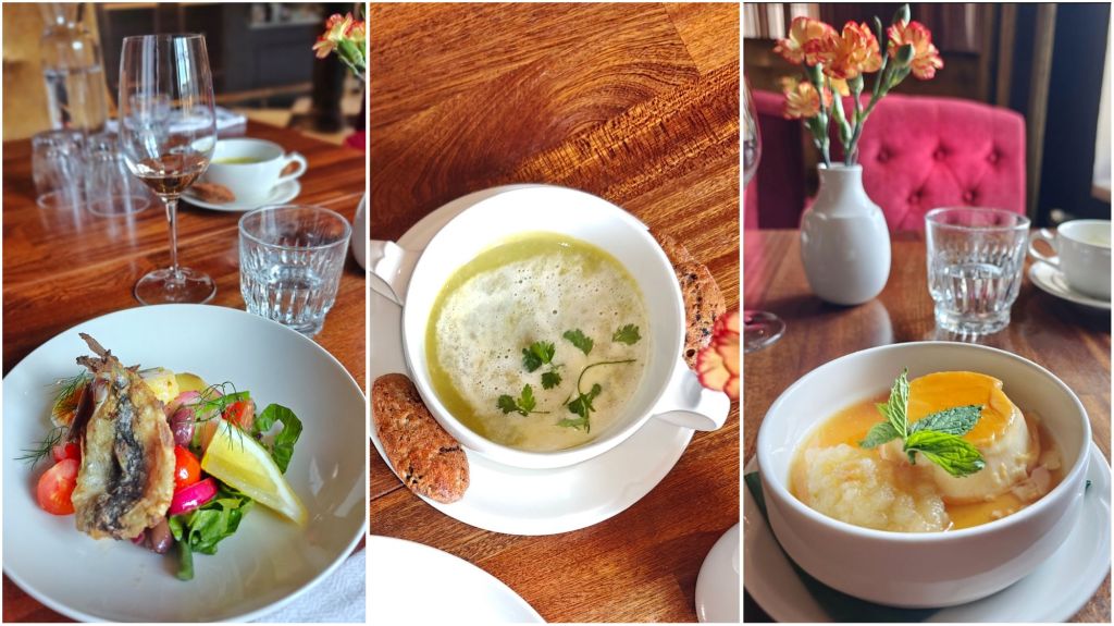 Todella onnistunut suomi-päivitys perinteiselle nizzansalaatin tonnikalalle. Yksinkertainen ja pelkistetty on monesti paras tie, kun klassikkoa muokkaa. Keitto oli lempeän maukasta ja madeleine hienostunut lisuke. Rose asettui kummankin annoksen viereen hyvin. Vanukas ja eritoten omenahilloke sen kaverina miellytti jälkkärissä isosti! Voittaja-ainesta koko menu.