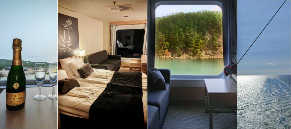 Hytissä on tilaa hengähtämiselle ja isosta ikkunasta on ihana seurata ohi lipuvia maisemia rauhassa kahdestaan. Grace palaa Tukholmasta Turkuun koko päivän, joten matkalla voi ihastella molempien kaupunkien kaunista saaristoa. Hytin leveässä sängyssä nukkuu hyvin ja itselleni pieni, mutta tärkeä lisä ovat tuplatyynyt. Hytissä on minibaari, jonka virvokkeet ja kupliva kuuluvat matkan hintaan. Olikin kiva aloittaa risteily lasillisilla kylmää laivan kuohuviiniä.