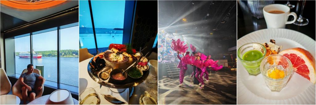 Vuorokauden mittaisella risteilyllä ehtii kokea paljon tuntematta kuitenkaan stressiä tai kiirettä. Me muun muassa lekoteltiin spa-osastolla, herkuteltiin illallinen, aamiainen ja lounas, nautittiin huippuviihteestä, tehtiin tax-free ostoksia ja vain ihailtiin aurinkokannella ohi lipuvaa, kaunista saaristoa. Täydellistä!